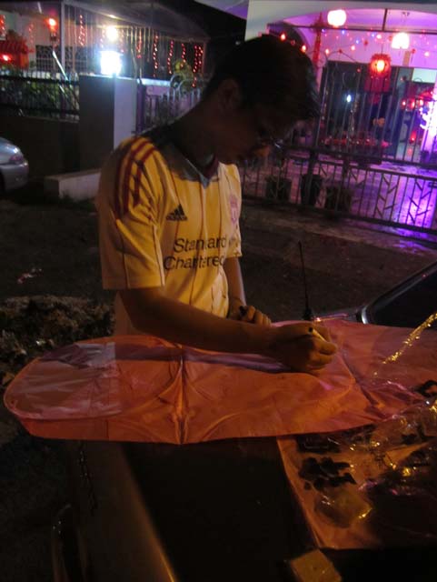笨蛋Jason在幫孔明燈吹氣。哈哈哈!厲害!